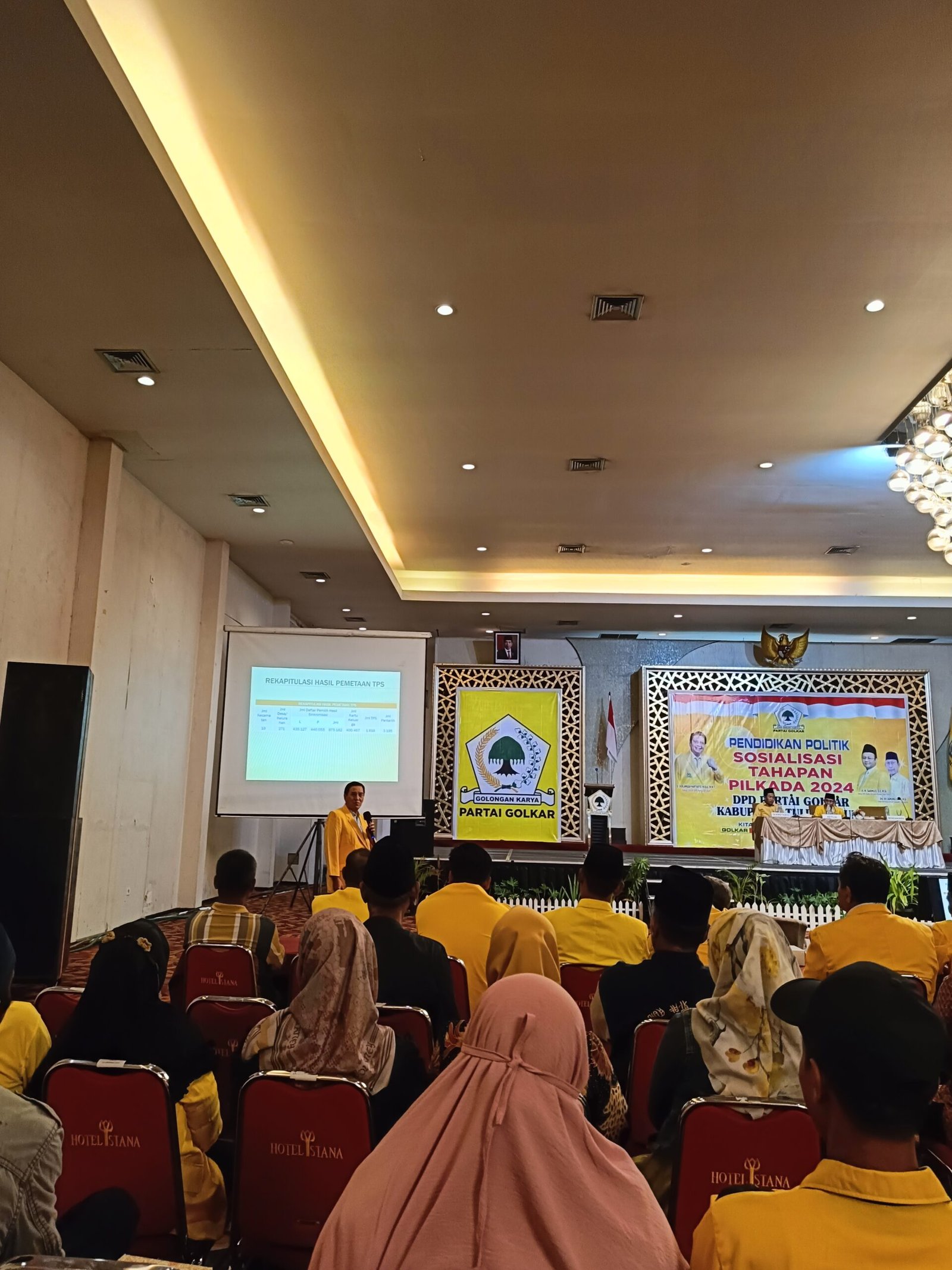 Pendidikan Politik yang digelar di Hotel Lojikka Tulungagung, Minggu, siang (7/7/2024,) dihadiri kader Golkar mulai dari Anggota Pleno DPD, Pengurus Kecamatan, Pengurus Desa dan dari sayap politik; SOKSI, Kosgoro, AMPG, AMPI, Satgas Laskar Ulama.