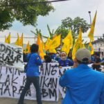 MAGELANG, HARIAN-NEWS.com – Sejumlah mahasiswa yang tergabung dalam PMII Magelang melakukan aksi demonstrasi di depan gedung DPRD Kota Magelang, Senin (12/9/2022) siang. Mahasiswa sampaikan 7 tuntutan.