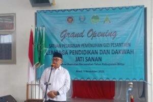 BLITAR, HARIAN-NEWS.com — Pemerintah Kabupaten Blitar terus memperluas jangkauan program Makan Bergizi Gratis (MBG) dengan menggandeng lembaga pendidikan berbasis pesantren. Komitmen tersebut diwujudkan melalui peresmian Sentra Pangan dan Pemberdayaan Gizi (SPPG) pertama di lingkungan pesantren, yang berlokasi di Pondok Pesantren Jati Sanan, Kelurahan Kamulan, Kecamatan Talun, Minggu (9/11/2025).