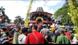 BLITAR-HARIAN NEWS.com – Gong Kiai Pradah kembali “disiram” dengan penuh khidmat di Alun-alun Lodoyo, Kabupaten Blitar, Sabtu (6/9/2025). Ribuan pasang mata warga seolah ikut menjadi saksi bisu ketika pusaka tua itu dimandikan, seakan Gong Kiai Pradah sedang berbicara lewat percikan air yang menyatukan tradisi dan doa.
