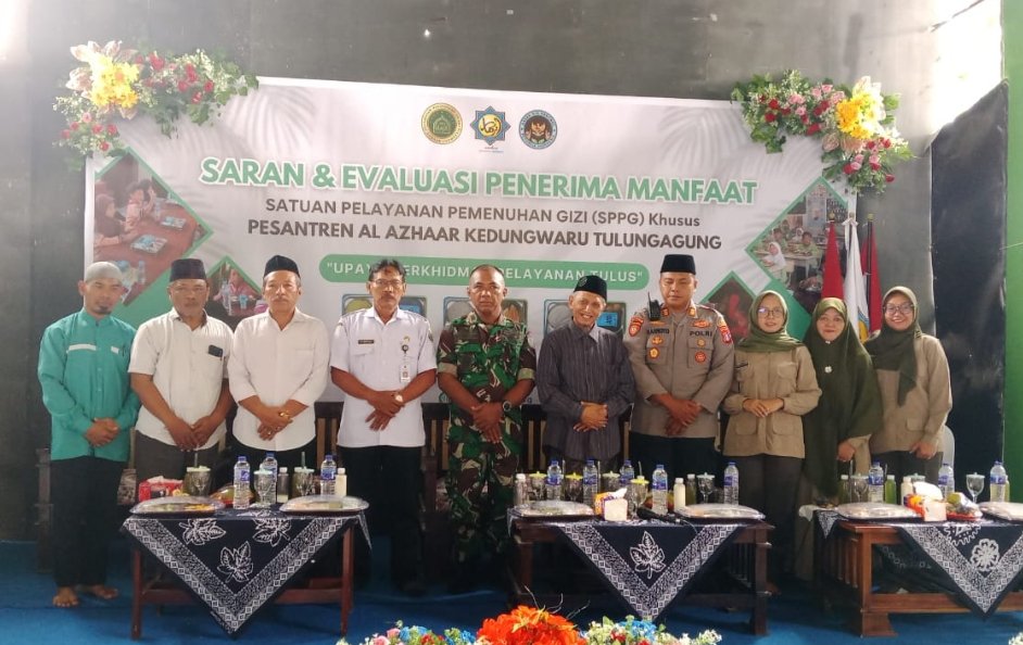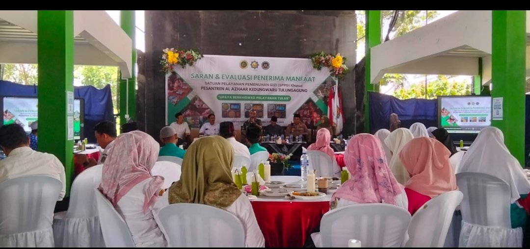 TULUNGAGUNG, HARIAN- NEWS.com — Satuan Pelayanan Pemenuhan Gizi (SPPG) Khusus Pesantren Al Azhaar Kedungwaru Tulungagung menggelar forum evaluasi program Makan Bergizi Gratis (MBG) bersama para kepala sekolah, PIC penerima manfaat, perwakilan desa, puskesmas, serta awak media, Rabu (5/11/2025). Kegiatan berlangsung di Gedung Dakwah Abi KHM. Ihya’ Ulumiddin, Kedungwaru.