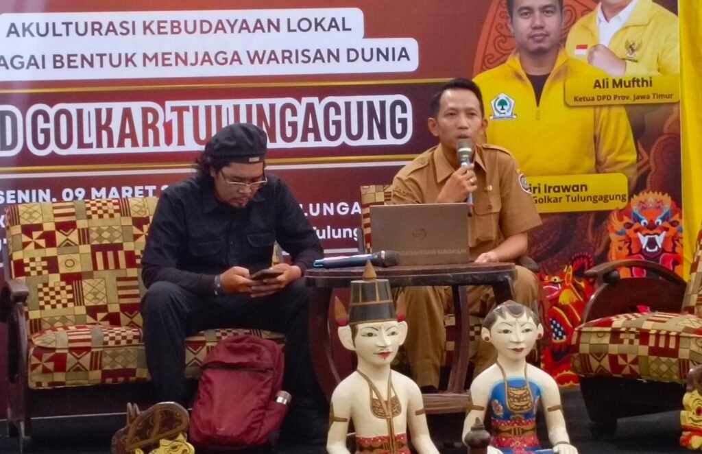Dialog Budaya dan Penyerahan Apresiasi Pelaku Budaya di Kantor DPD Partai Golkar Tulungagung, Senin(9/3/2026).Kadisbupdar Tulungagung Muhamad   Ardian Candra Dorong Penguatan Warisan Budaya Lokal