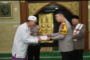 Sebagai bentuk kepedulian, Kapolres menyerahkan infaq kepada Masjid Besar Al-Ishlah yang diterima langsung oleh pengurus takmir. Kegiatan juga diakhiri dengan silaturahmi antara jajaran kepolisian dan warga melalui momen bersalam-salaman.