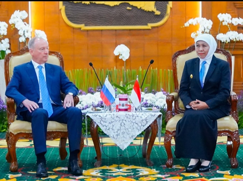 SURABAYA, HARIAN-NEWs.com – Gubernur Jawa Timur Khofifah Indar Parawansa menerima kunjungan kehormatan Penasihat Presiden Federasi Rusia, H.E. Nikolai Patrushev, bersama delegasi tingkat tinggi Dewan Maritim Federasi Rusia di Gedung Negara Grahadi, Surabaya, Rabu (5/11/2025).