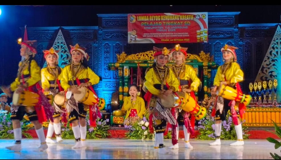 TULUNGAGUNG, HARIAN-NEWS.com — Suara kendang bertalu-talu menggema dari Balai Taman Budaya Tulungagung, Selasa (14/10/2025). Di atas panggung, anak-anak sekolah dasar menari penuh semangat dengan wajah berpeluh dan mata menyala. Mereka menarikan Reog Kendang, bukan sekadar untuk lomba, tetapi sebagai penegasan bahwa budaya lokal belum mati di tengah arus modernisasi yang kian deras.