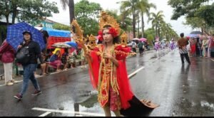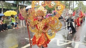 Masyarakat yang memenuhi sepanjang jalan tampak antusias meski harus berteduh di bawah payung. Sorak semangat dan tepuk tangan terus mengiringi jalannya pawai, menegaskan bahwa hujan bukanlah penghalang untuk merayakan kekayaan budaya bangsa.