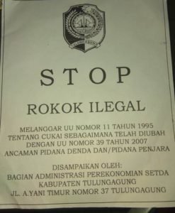 HARIAN-NEWS.COM (TULUNGAGUNG) – Sosialisasi larangan peredaran rokok ilegal getol dilakukan Bagian Administrasi Perekonomian Setda Pemerintah Kabupaten Tulungagung, walau di tengah bencana pandemi Covid -19.
