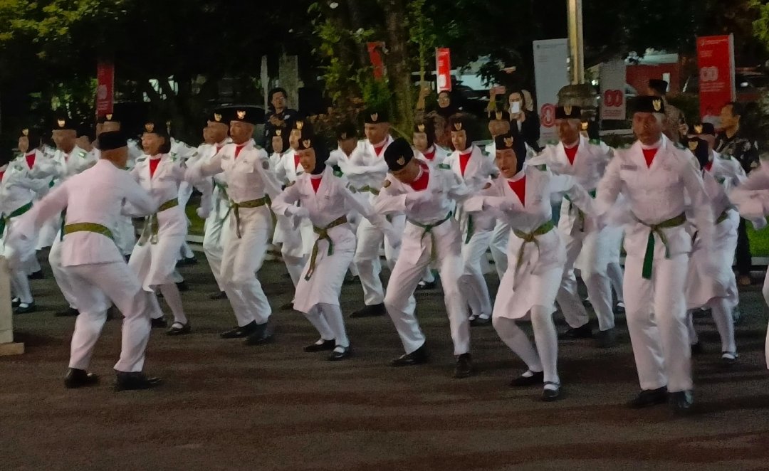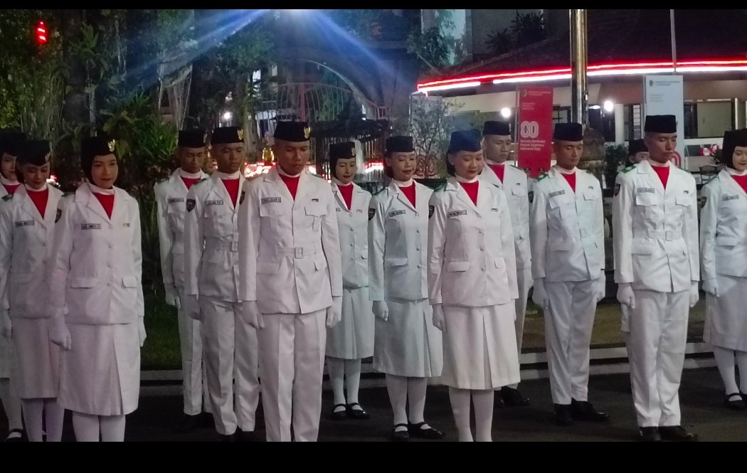Simbol kehormatan pun disematkan satu per satu, menjadikan wajah-wajah muda itu resmi sebagai pengibar Sang Merah Putih. Usai seremoni, yel-yel penuh energi mereka menggema, memecah malam dengan semangat juang yang membara.