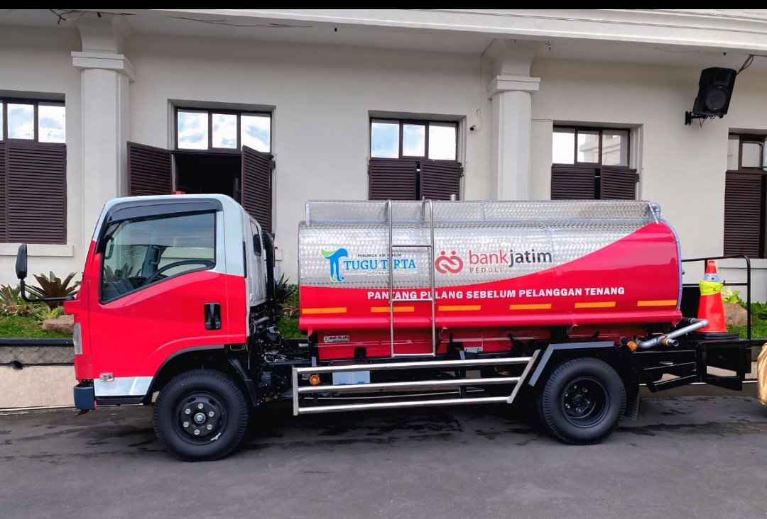 Truk tangki tersebut diserahkan langsung oleh pimpinan Bank Jatim kepada Direktur Utama Perumda Tugu Tirta, Priyo Sudibyo, SE, S.Sos, MM.