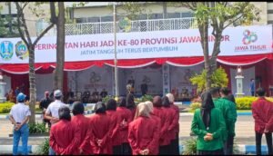 TULUNGAGUNG, HARIAN-NEWS.com – Upacara peringatan Hari Jadi ke-80 Provinsi Jawa Timur di halaman Kantor Pemkab Tulungagung, Senin (13/10/2025), berlangsung khidmat namun sarat makna. Di hadapan Forkopimda, pejabat daerah, dan pelajar, Bupati Tulungagung Gatut Sunu Wibowo membacakan amanat Gubernur Jawa Timur yang menyoroti refleksi delapan dekade perjalanan provinsi ini sebagai kawasan paling dinamis di Indonesia.
