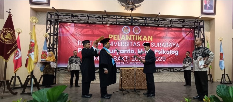 SURABAYA, HARIAN-NEWS.com — Universitas 45 Surabaya secara resmi melantik Prof. Dr. Suryanto, M.Si., Psikolog sebagai Rektor Universitas 45 Surabaya dalam prosesi yang berlangsung khidmat dan sarat makna kebangsaan. Pelantikan digelar di Gedung Juang 45, Jalan Mayjen Sungkono No. 106, Pakis, Sawahan, Surabaya, Jawa Timur, Rabu (17/12/2025).