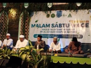 LAMONGAN – Ribuan jamaah memadati Pesantren Krapyak Mayong, Dusun Mayong, Desa Sidomlangean, Kecamatan Kedungpring, Lamongan, dalam rutinan Selapan Malam Sabtu Wage, Jumat (15/5/2025).