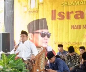 Gus Ubed sedang menyampaikan tausiyah Peringatan Isra’ Mi’ tak di SMA Negeri 1 Boyolangu, Kabupatatenn Tulungagung