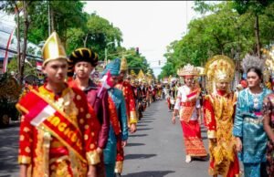Pawai diawali dari pakaian adat yang menggambarkan kebhinekaan dan diakhiri dengan Babad Majapahit.