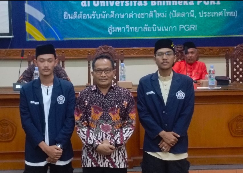 TULUNGAGUNG, HARIAN-NEWS.com — Universitas Bhineka (UBhi) PGRI Tulungagung resmi menapaki babak baru sebagai kampus berwawasan global. Untuk pertama kalinya sejak berdiri, UBhi menerima dua mahasiswa internasional asal Pattani, Thailand Selatan: Arsaha Diyoh dan Furkorn Kuetah. Keduanya secara simbolis dikenakan almamater oleh Rektor UBh PGRI Dr. Imam Sujono, S.Pd., MM, pada Rabu (12/11/2025).