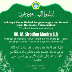 YOGYAKARTA, HARIAN-NEWS.com – Dalam suasana duka yang mendalam, keluarga besar Pesantren Nurul Haromain Kulon Progo, Daerah Istimewa Yogyakarta para alumni, dan masyarakat luas berduka atas kepergian Almarhum KH Shirojan Muniro Abdurrahman.