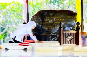 BLITAR, HARIAN-NEWS.com – Gubernur Jawa Timur Khofifah Indar Parawansa mendampingi Wakil Presiden RI Gibran Rakabuming Raka berziarah ke makam Proklamator RI Ir. Soekarno di Blitar, Rabu (18/6/2025).